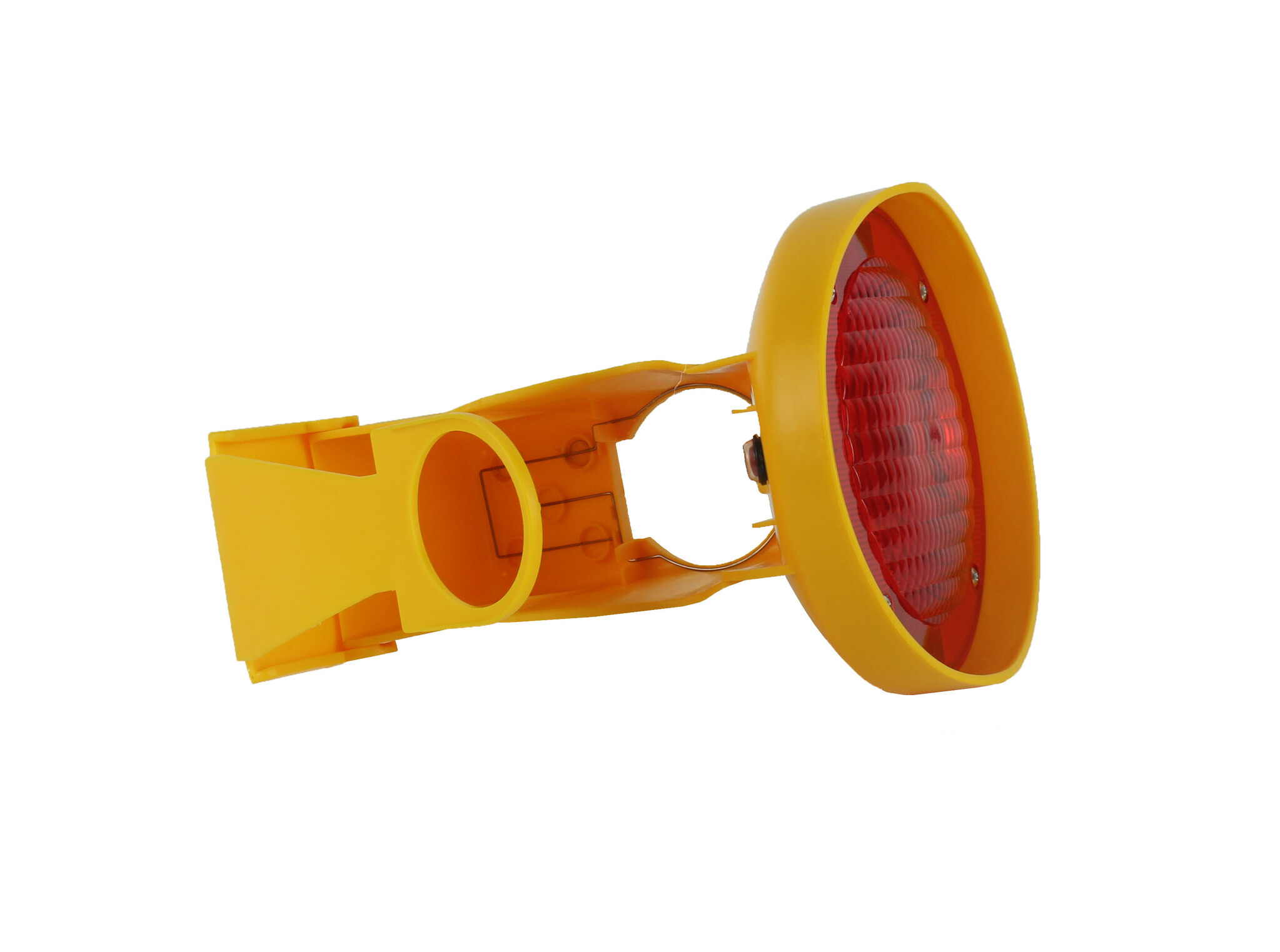 Notre lampe de chantier pour cônes de signalisation s'installe parfaitement sur tous les cônes standards sans outils. À l'intérieur du support se trouve un interrupteur intégré qui allume automatiquement votre lampe lorsqu'elle est montée sur un cône de signalisation. La cellule photoélectrique intégrée garantit ensuite le fonctionnement de votre lampe de chantier quand il fait sombre (à partir de <300 lux).