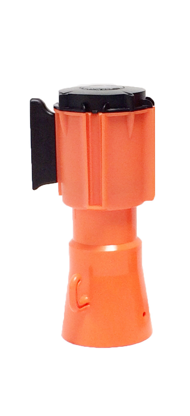 Haspel met uittrekbare rol afzetlint voor verkeerskegels. 3 m x 50 mm. Rood Wit