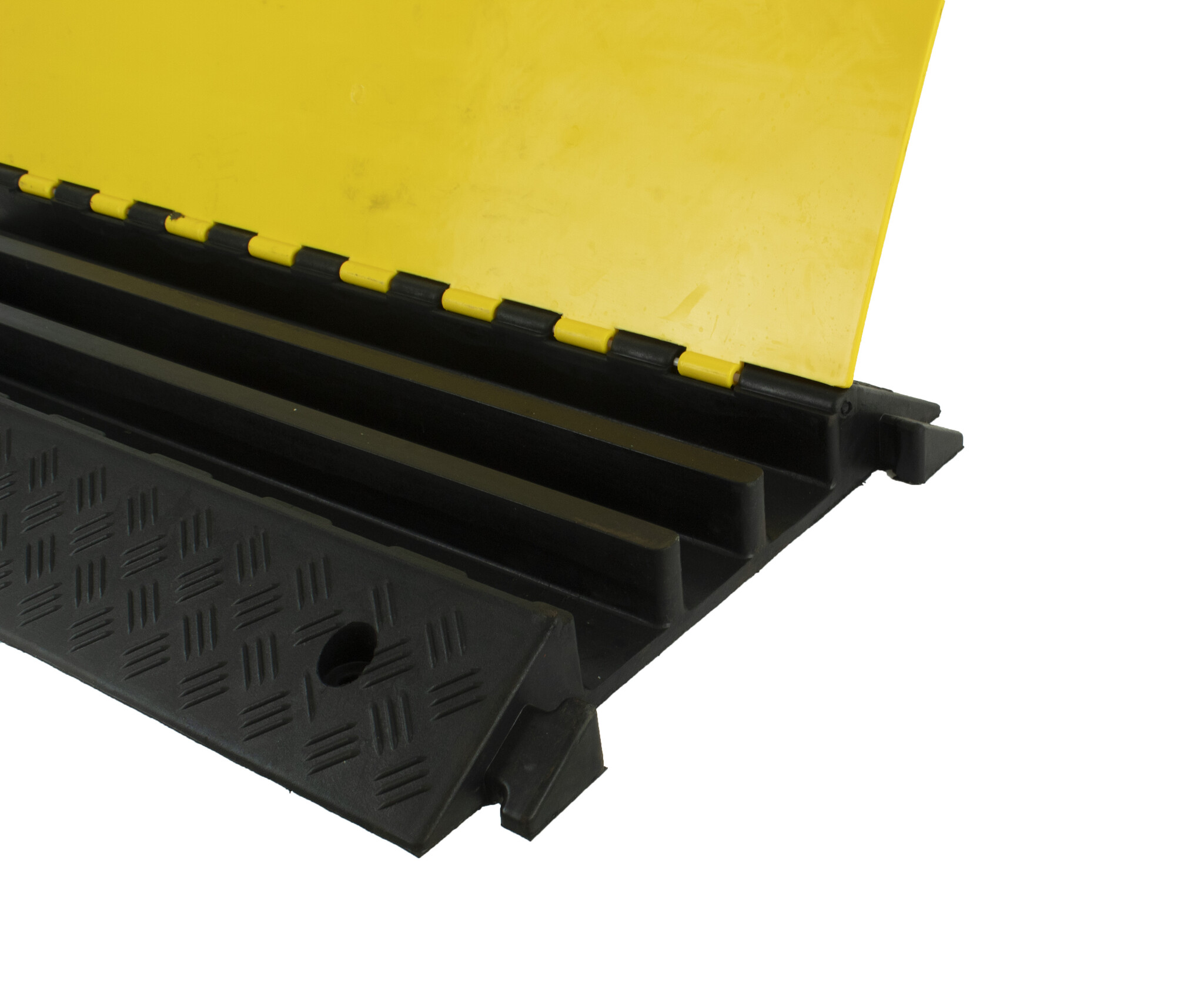 De kabelbeschermer DELUXE uit duurzaam rubber met geïntegreerde man-vrouw verbinding, handvat en vier bevestigingsgaten voor een veilige, stabiele plaatsing. Nu nog verder verbeterd ten opzichte van eerdere modellen. Voorzien van een scharnierend deksel in kunststof voor het eenvoudig afdekken van kabels, leidingen en slangen. Geschikt voor intensief gebruik op beurzen, werven, evenementen, markten en tijdelijke installaties. Vermindert het risico op struikelen, beschermt uw bekabeling tegen schade en verhoogt de veiligheid op publiek toegankelijke locaties of op de werkvloer.