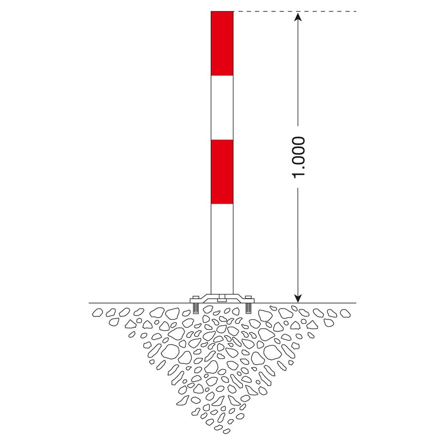 PARAT-B uitneembare afzetpaal op voetplaat - Ø 76 mm - twee kettingogen - rood/wit